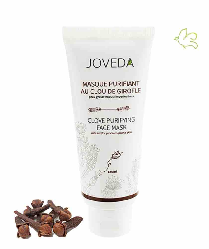 Le Masque ayurvédique Purifiant au Clou de Girofle de Joveda est spécialement dédié aux peaux grasses et peaux acnéiques (imperfections, points noirs, pores dilatées).