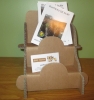 Stand en carton composé d'une banque d'accueil, d'un tabouret haut et d'un présentoir pour documents A4